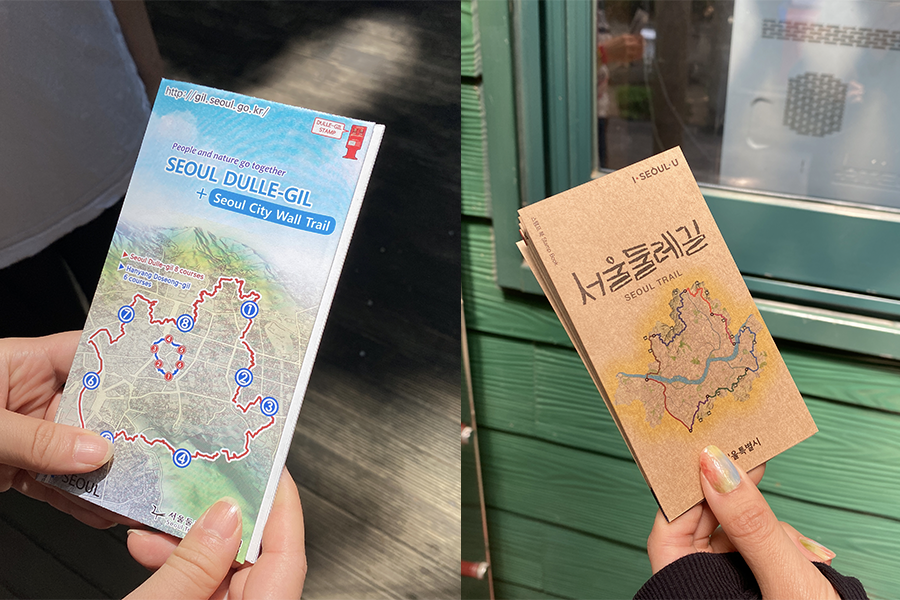 在這裡可以看到首爾主要環山路(둘레길)的地圖,也有中文、英文或者日文的地圖。另外,也可以找到能蓋印章的小冊子,之後在各個景點找到印章,累積自己的地圖標註吧。