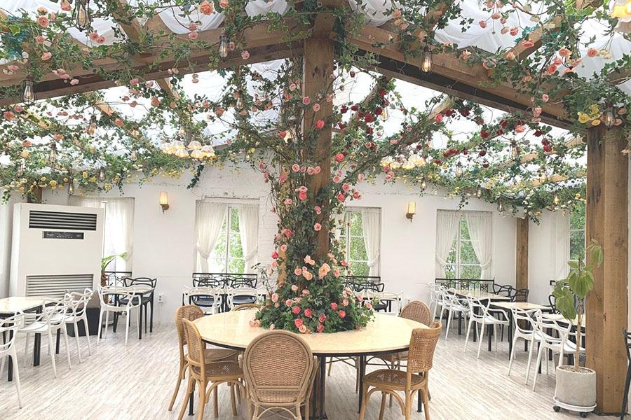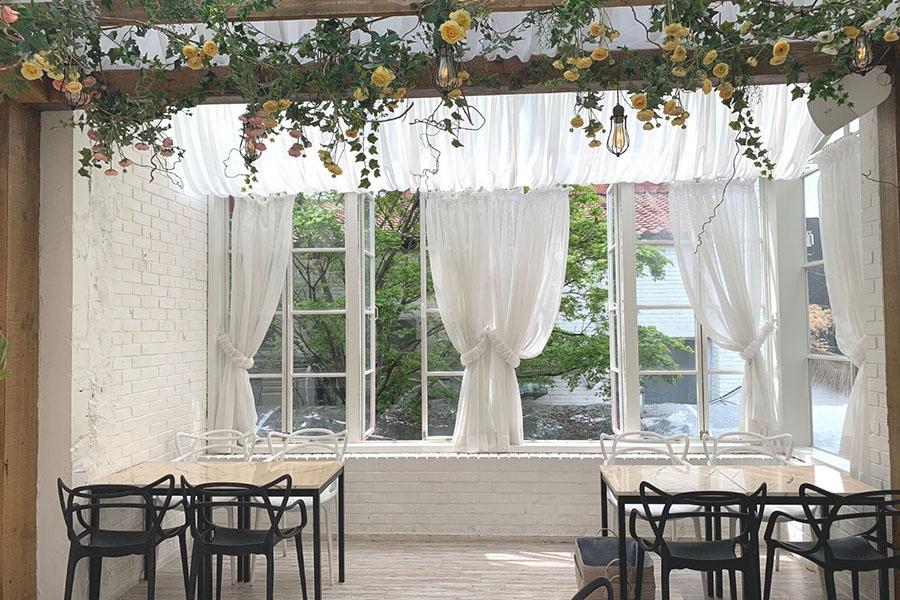來到了二樓,又完全變了另一種風格,玫瑰花柱配上白色窗簾,以及田園風格的藤編桌椅,真的太漂亮了,就像拍MV的場景。而跟一樓比較,大家更喜歡怎樣的MAMMA MIA呢?
