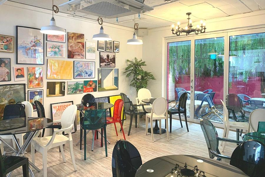 接下來要介紹MAMMA MIA的室內空間,從充滿著粉色調的一樓走進去,除了看到甜點區域,也能在充滿著設計感的室內空間中,窺探出MAMMA MIA與其他咖啡廳與眾不同的風格。大量的畫作、不成套的桌椅,畫廊一般的質感,增添了MAMMA MIA的魅力。