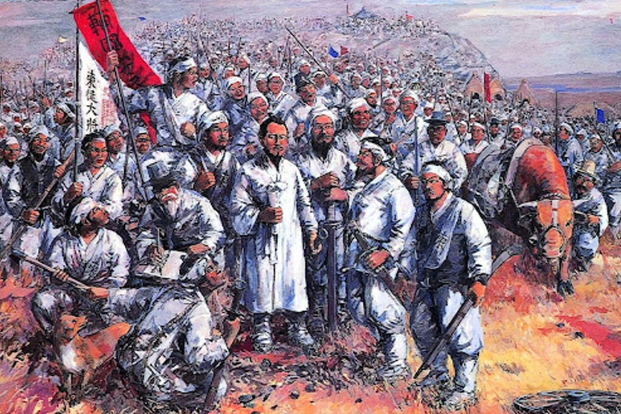 1894年,朝鮮人民為了反貪腐、斥倭斥洋,由開創與西學抗衡的「東學」組織為首,進行了第一次東學黨農民革命,一路大勝,掌握了朝鮮半島南方三道。
