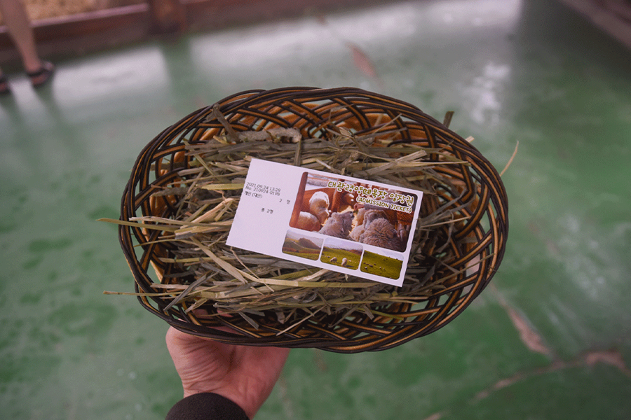 大關嶺園區的門票可以在牧場裡面換上一籃的乾草,並直接餵食羊群,大家可以在這裡跟羊群近距離互動,感受相當特別的氛圍。