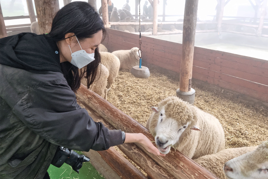 同樣位於平昌郡的「大關嶺羊群牧場」可以體驗餵羊吃草,而沿著散步道路約10分鐘的路程,將到達海拔920米的山頂,這裡可以看見悠閒吃草的綿羊,真的相當可愛。