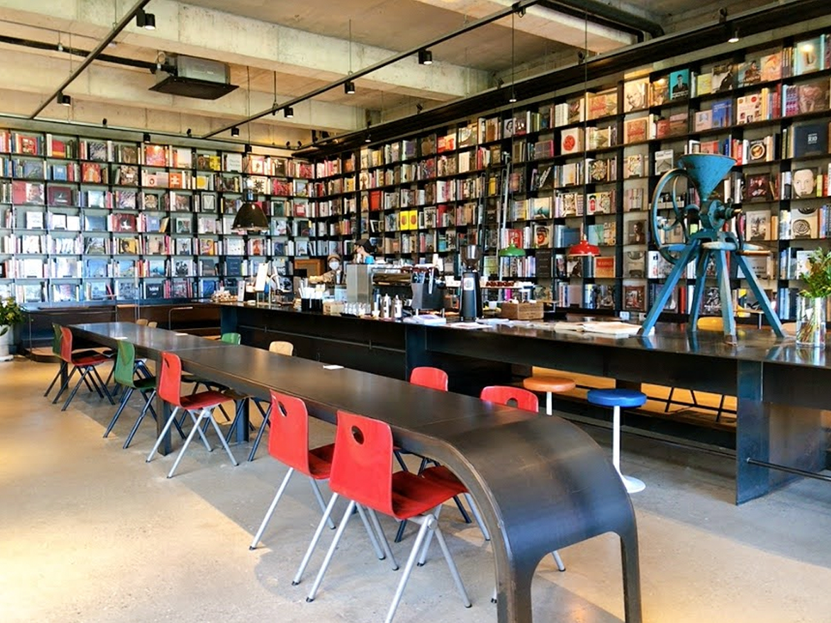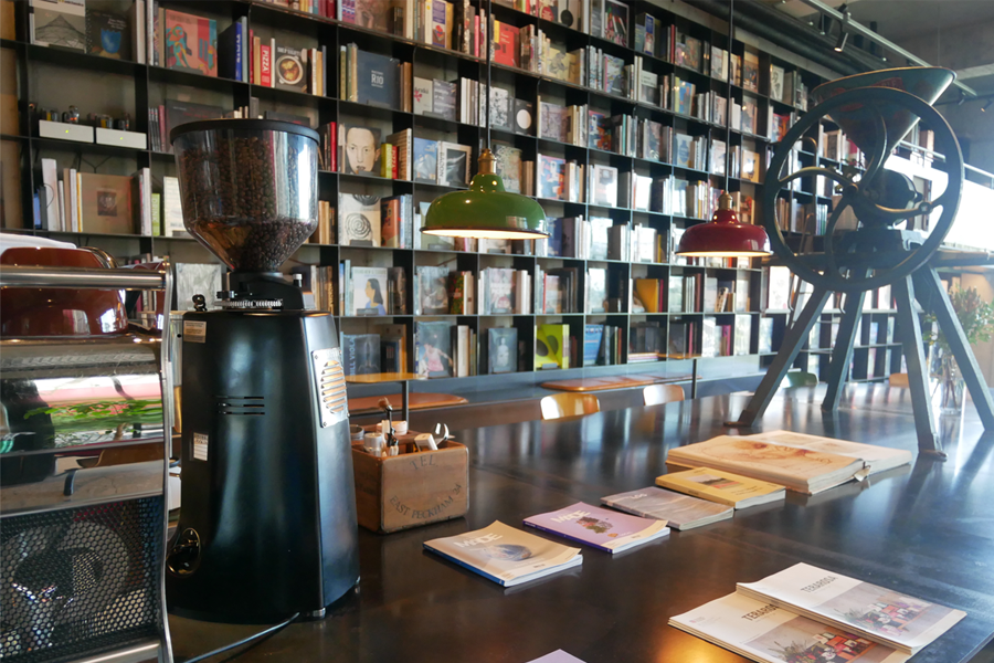 雖然「Terarosa Coffee」每間分店都有一個獨特的裝潢概念,但唯一不變的,是幾乎所有分店的牆壁都用外國設計書籍裝飾著,也可以直接拿起架上的書在店內閱讀。