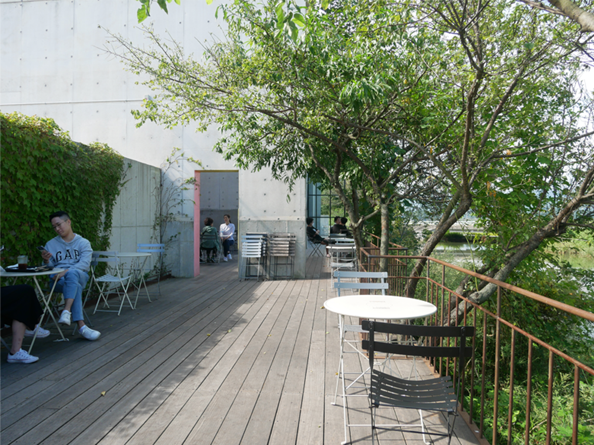 一樓的戶外座位區可以看見湖景,微風吹過的早晨,曬曬太陽、享受大自然的靜謐,適合和親友們在這一起談天度過美好的時光。