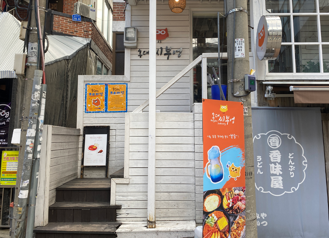 位於弘大鬧區的小巷弄,曾上過不少節目介紹過的「弘大貓頭鷹」是間海鮮辣炒年糕鍋專賣店,除了品嚐火辣辣的年糕鍋,還能一覽弘大學生寄賣的藝術飾品,甚至聽到學生、街頭藝人的表演,非常有情調。