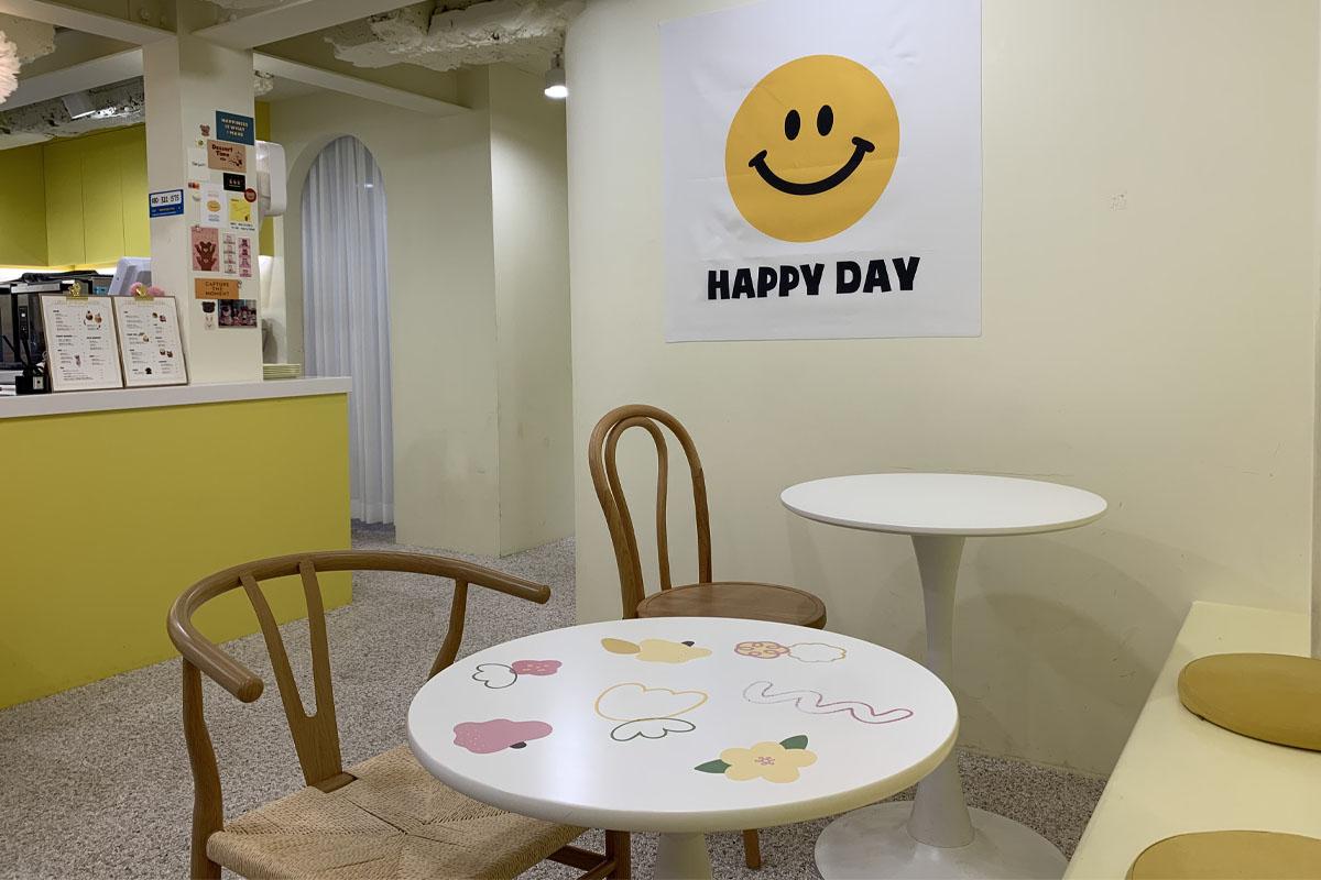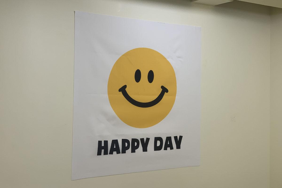 牆上貼著「Happy Day」的海報,看著看著心情也跟著輕鬆愉快了起來。