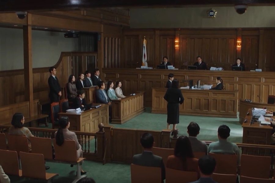 《非常律師禹英禑》中有多次提及所謂的「國民陪審制」,位置便是與檢察官坐在同一個方向,面朝被告人與律師,在一旁參與詰問過程,以做出心中的評斷。