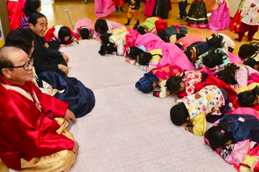 韓國在過年時,會向長輩行大禮的拜年習俗稱為「歲拜」,晚輩會身穿韓服,對家中的父母、爺爺奶奶行大禮(磕頭三次),而長輩也會拿出歲拜錢(세뱃돈)回禮,期望孩子們能在新的一年平安長大。