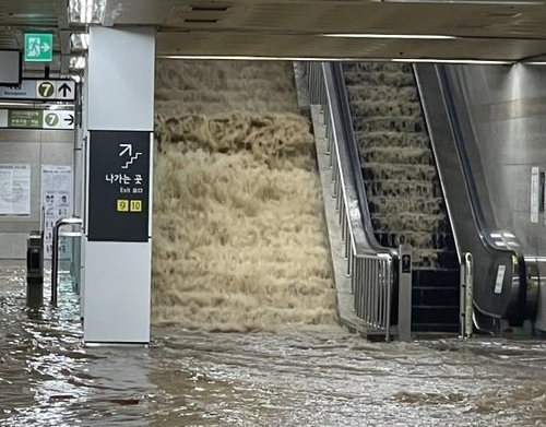 首都圈的災情十分嚴重,漢江以南的2號線、3號線、7號線、9號線部分地鐵車站於昨晚被水淹沒,水勢甚至衝破天花板,震撼無數通勤民眾。部分車站因泡水,直接關閉,地鐵區間路線也暫時停駛,直到今日才稍微恢復正常。