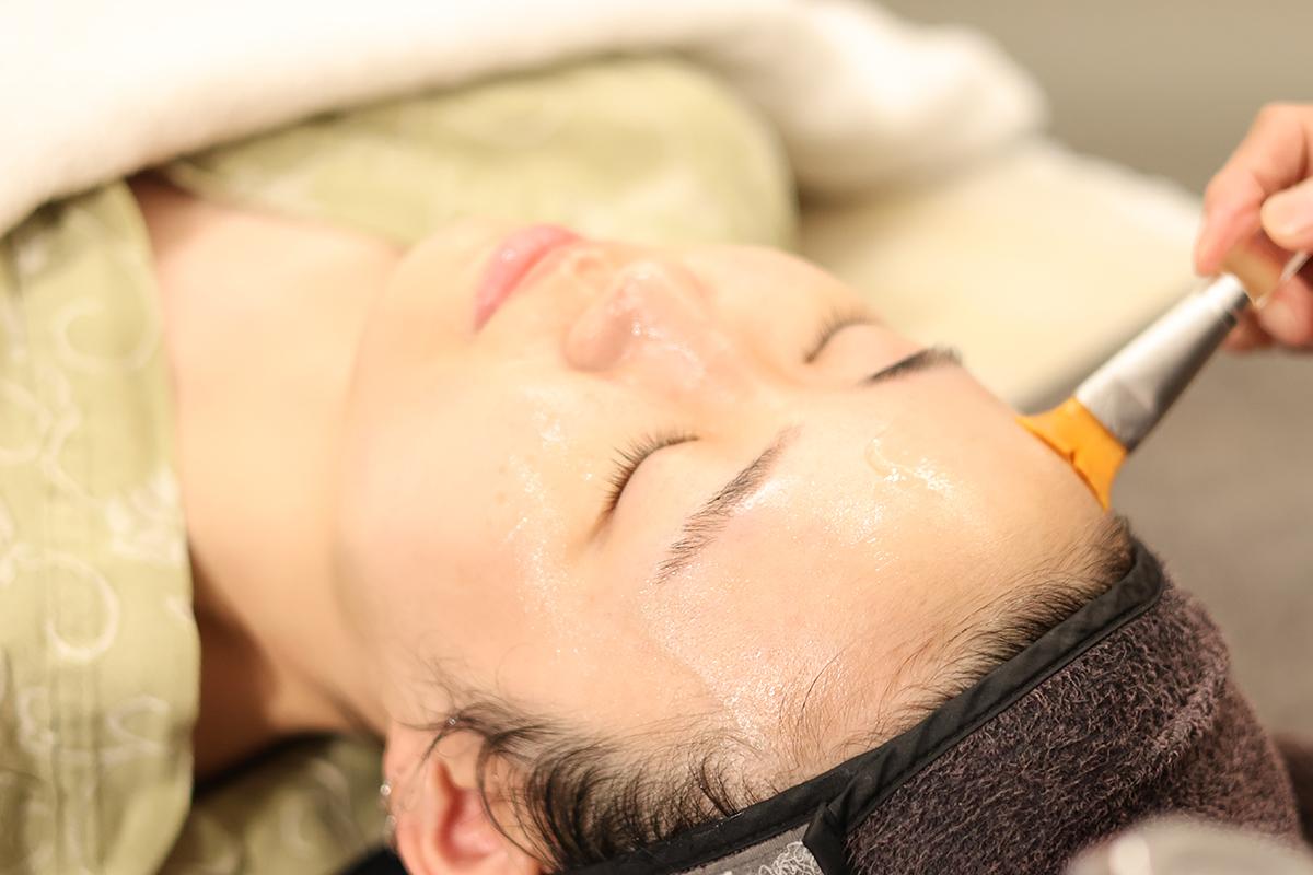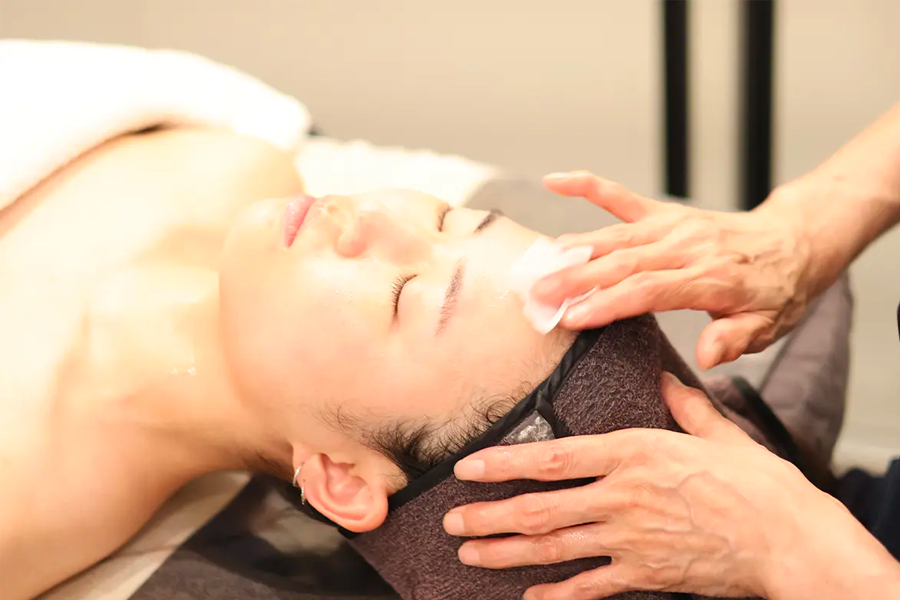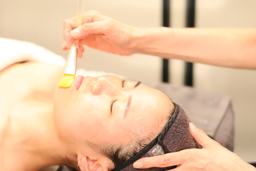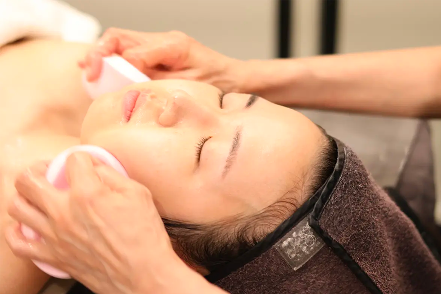 - 足療→頭皮按摩→臉部清潔→深層清潔→上胸按摩→副乳按摩→頸部淋巴按摩→臉部按摩→1次鎮靜面膜→2次皮膚類型面膜→收尾