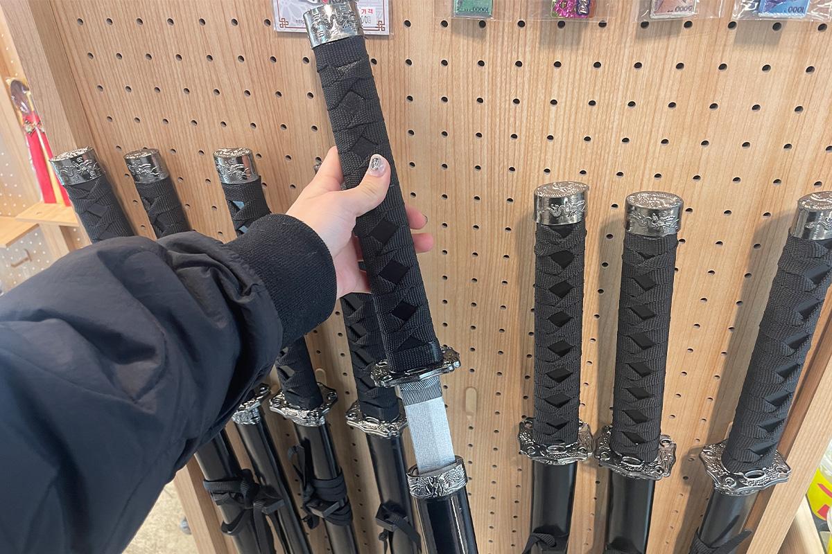 讓小編感到驚奇的,是大韓韓服竟然有提供韓國武士的刀子(假的模型刀),如果是和男友一同來租借韓服,也能順道配著這個道具,拍出英雄救美的戲碼呢。