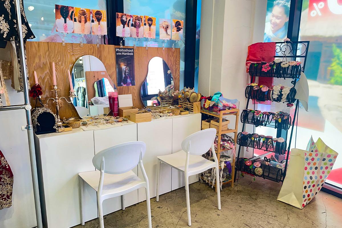 置物櫃、韓服鞋子與配飾,也都擺放整齊地在這陳列,有需要的朋友可以一起穿著搭配。