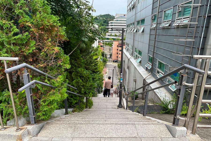 漢江鎮站3號出口出來後,回轉左側有個樓梯