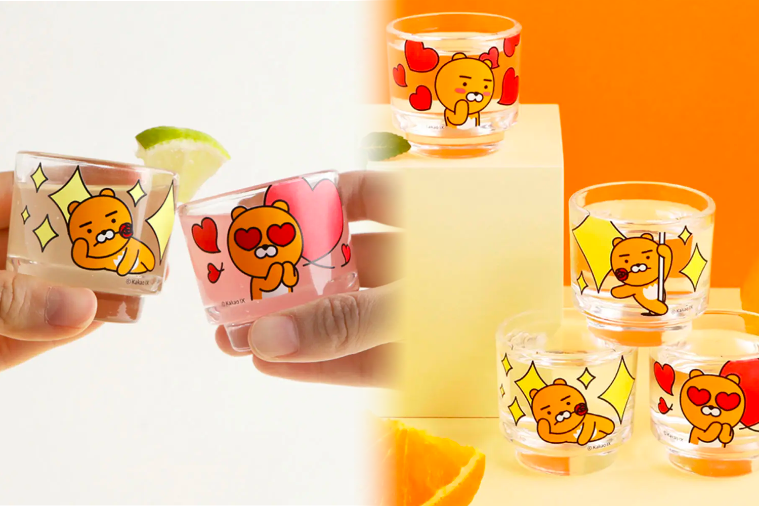 倒入15度以下燒酒,杯子上的圖案會變色唷!