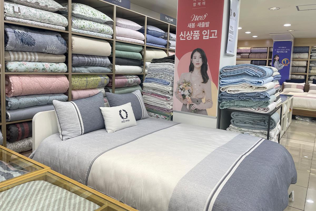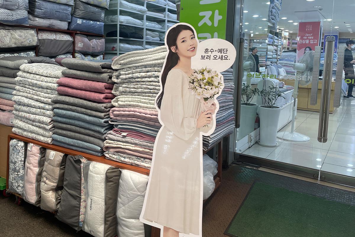 evezary可說是韓國的國民棉被品牌,幾乎所有韓國人都知道,特別的是位於廣藏市場內的鐘路4街店在過去16年間,始終穩定地在同一地點服務著,堅持只銷售品質上乘的商品,店門口還有IU看板熱情地歡迎。
