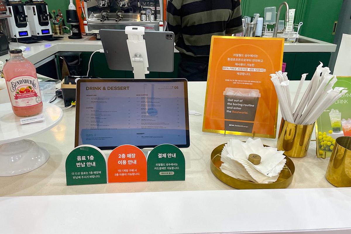 值得一提的是,Realworld特別注重環保和消費者健康,飲品都裝在可再生利用半保溫杯中,喝完飲料後也可以不用還回杯子,帶回家繼續使用吧。