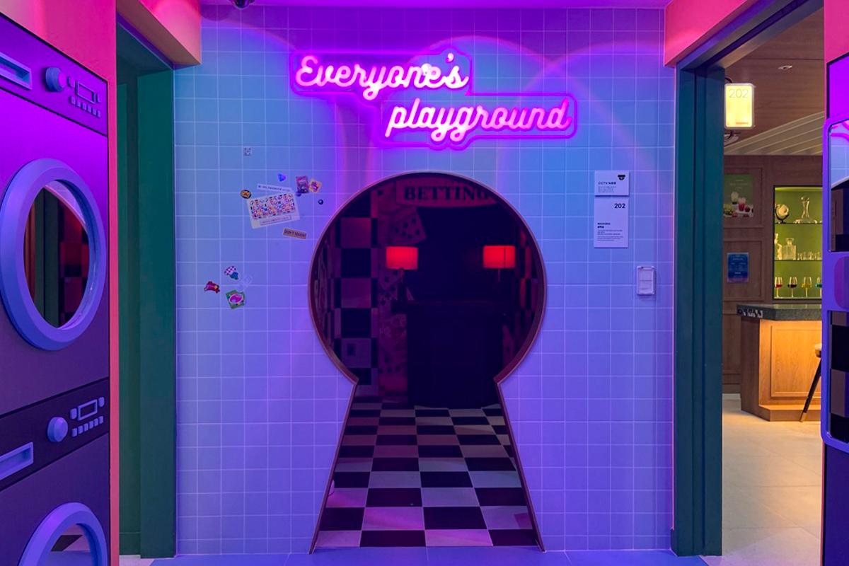 接著來到了游泳池區域,不得不說這裡的主題裝潢真的做得非常出色,超級華麗,在這裡一樣掃描QR Code進行解題,最後再拍一張認證照。