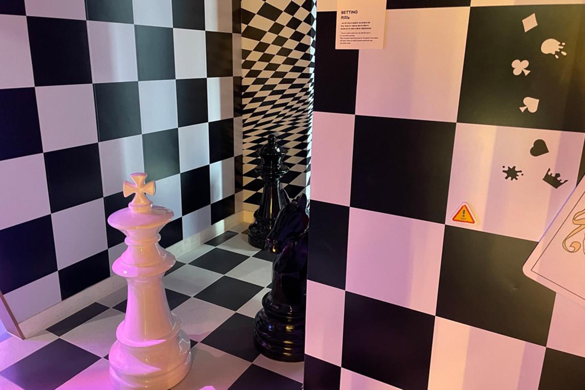隨後我們來到了把空間設計成西洋棋棋盤的房間,這裡擺放著巨大的棋子,不僅可愛,更帶有一種奇幻的感覺。