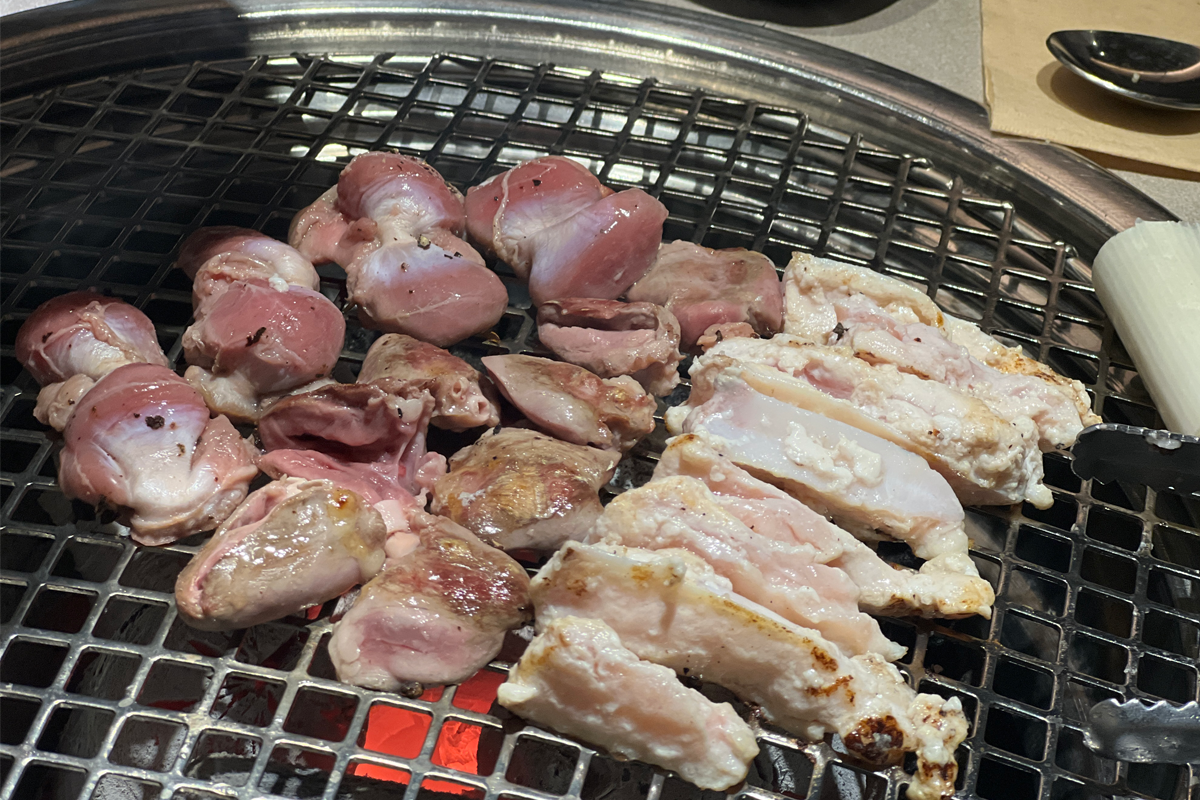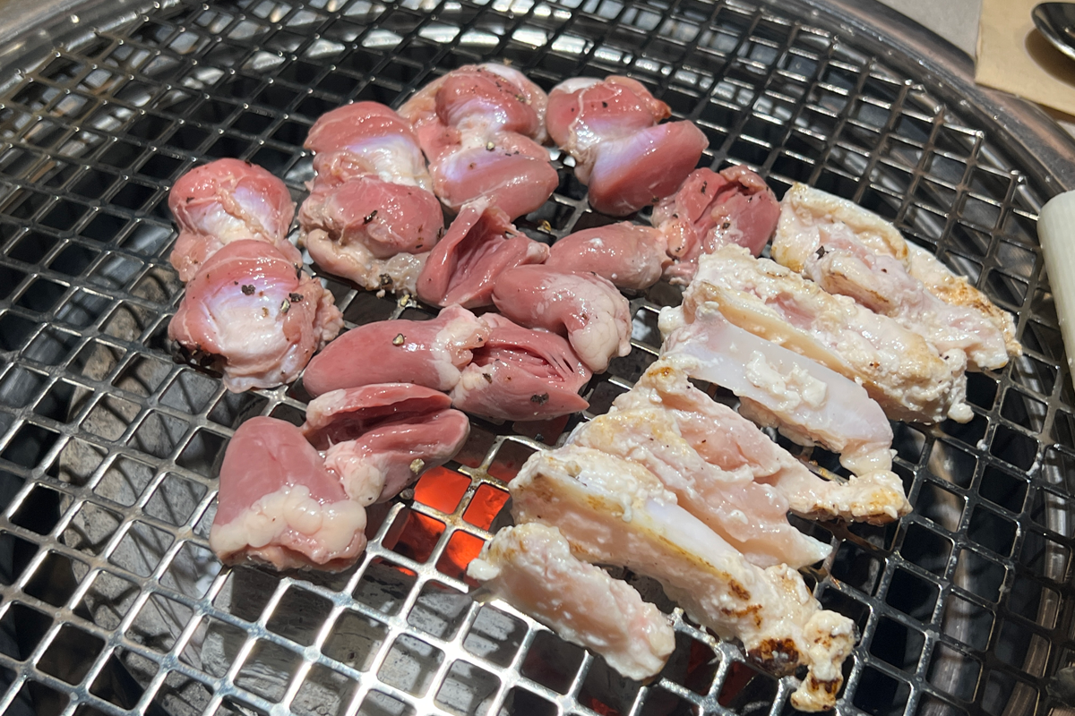 首先烤的是雞心、雞胗和雞軟骨,恰好都是小編最愛的部位。