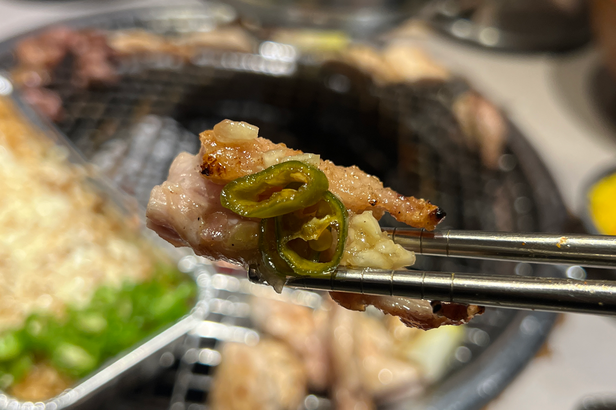而小編個人最愛雞脖子肉(목살)的口感,相當軟嫩,幾乎是入口即化,配著青陽辣椒沾醬一起吃,微辣的口感再次刺激小編的味蕾,一口一口完全停不下來。