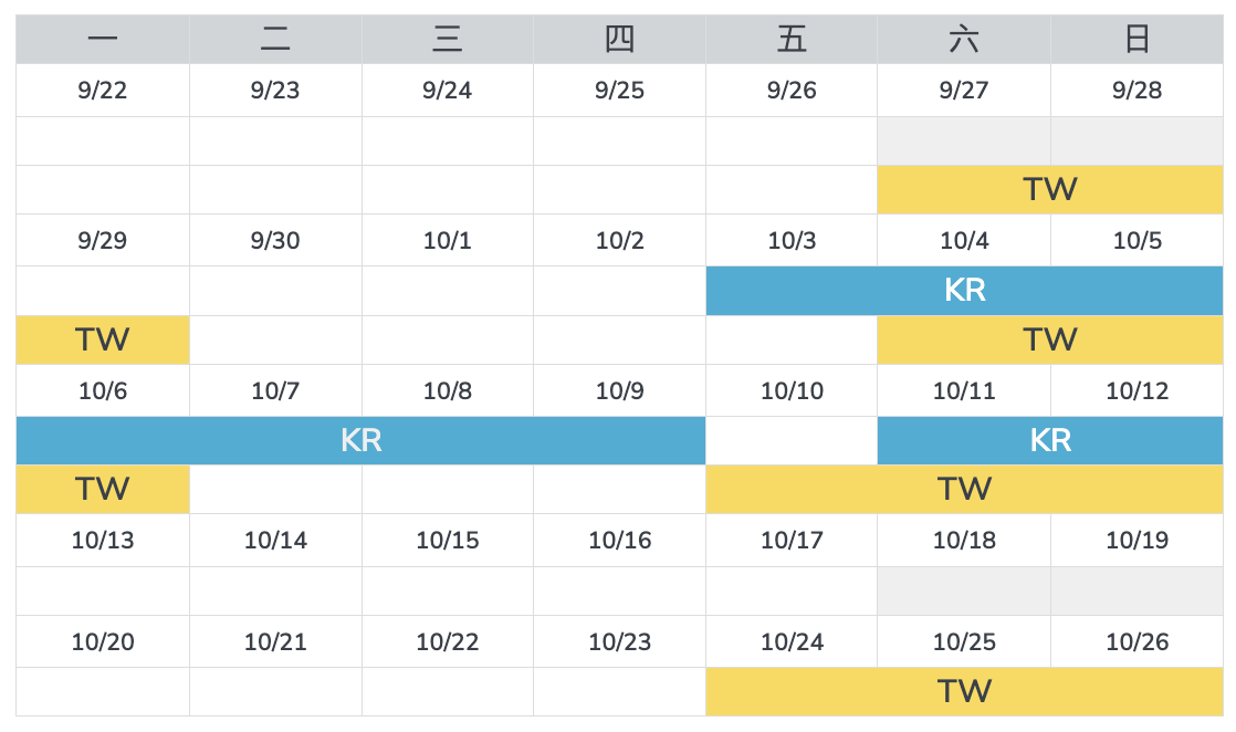 韓國10月遇到超長連假,直接放個7天,如果一般上班族請10月10日當天,就會有長達10天的連假,因此出遊人潮會蠻可觀的,旅客在安排行程前也請注意。