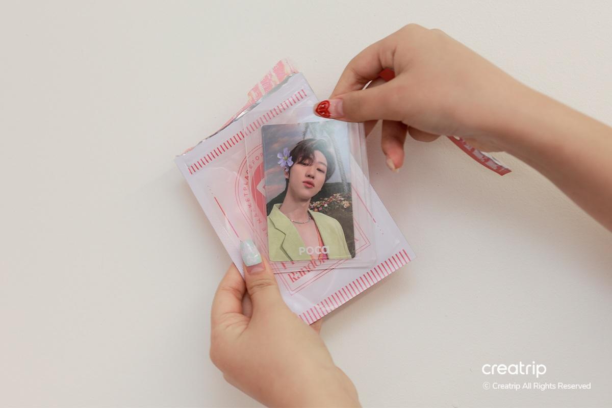 另外,事先透過Creatrip預約還會另外送特殊福利「偶像小卡隨機包」,隨機包裡有Seventeen、NCT等熱門團體的小卡。