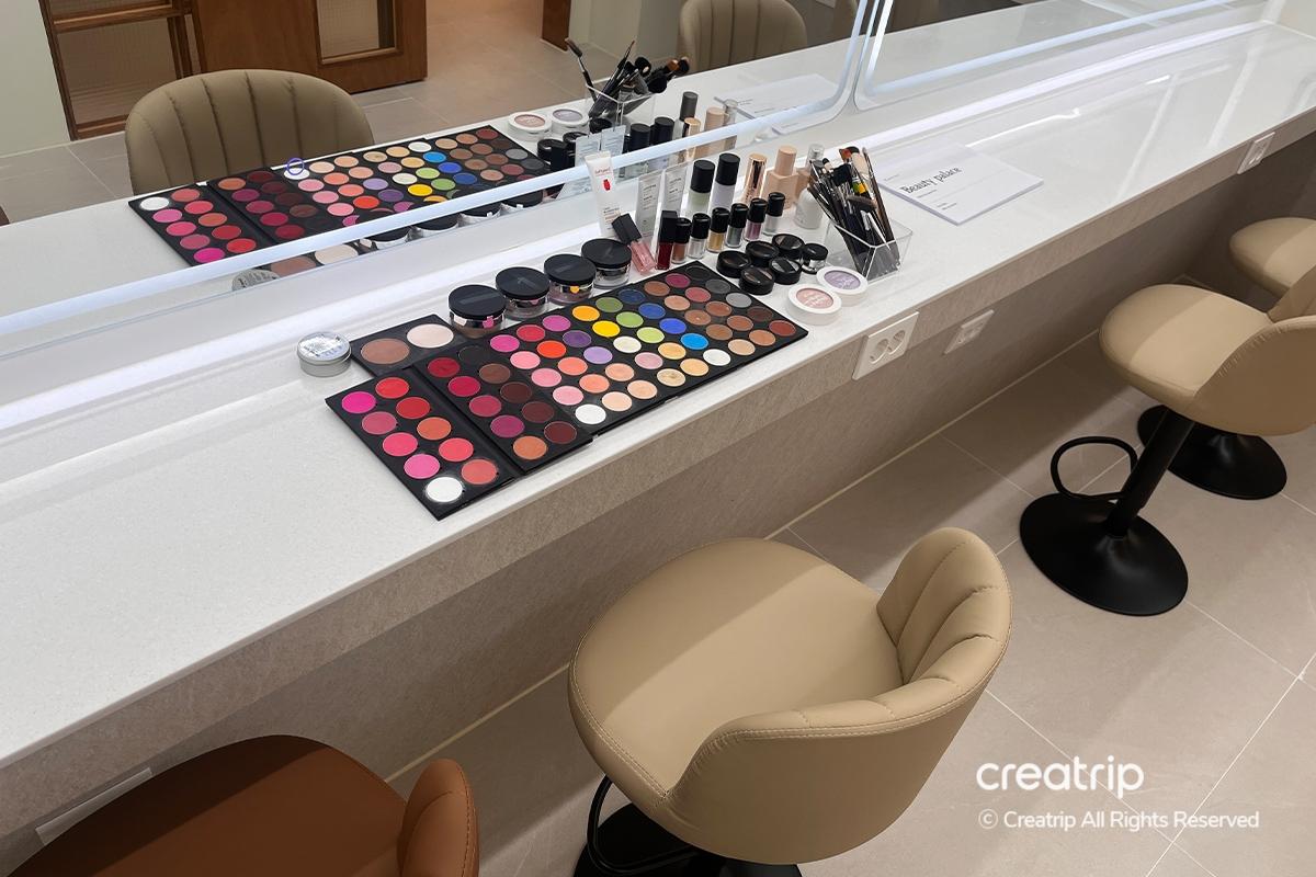 Beauty Palace化妝台真的非常漂亮,化妝品準備得非常整齊且種類豐富,應有盡有。