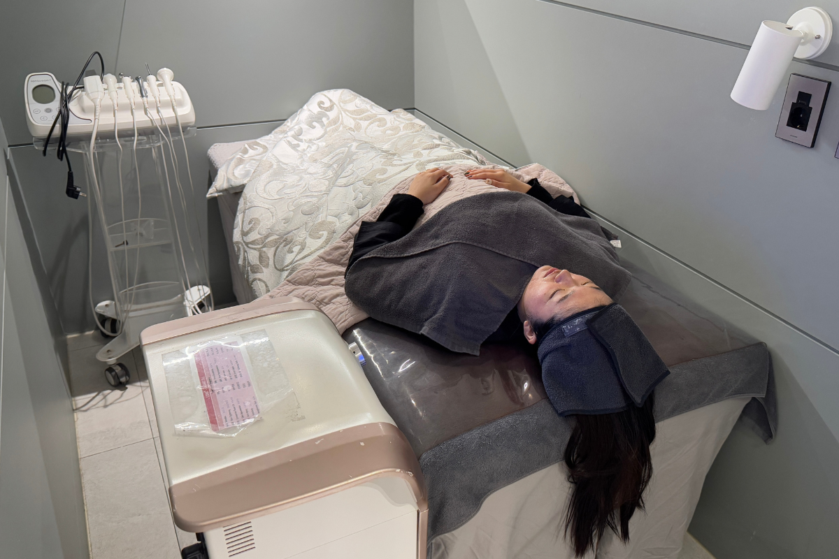 做完所有療程之後,最後會敷上鎮靜面膜和泥膜,因為有電熱毯的關係,躺到最後,舒服到差點快睡著