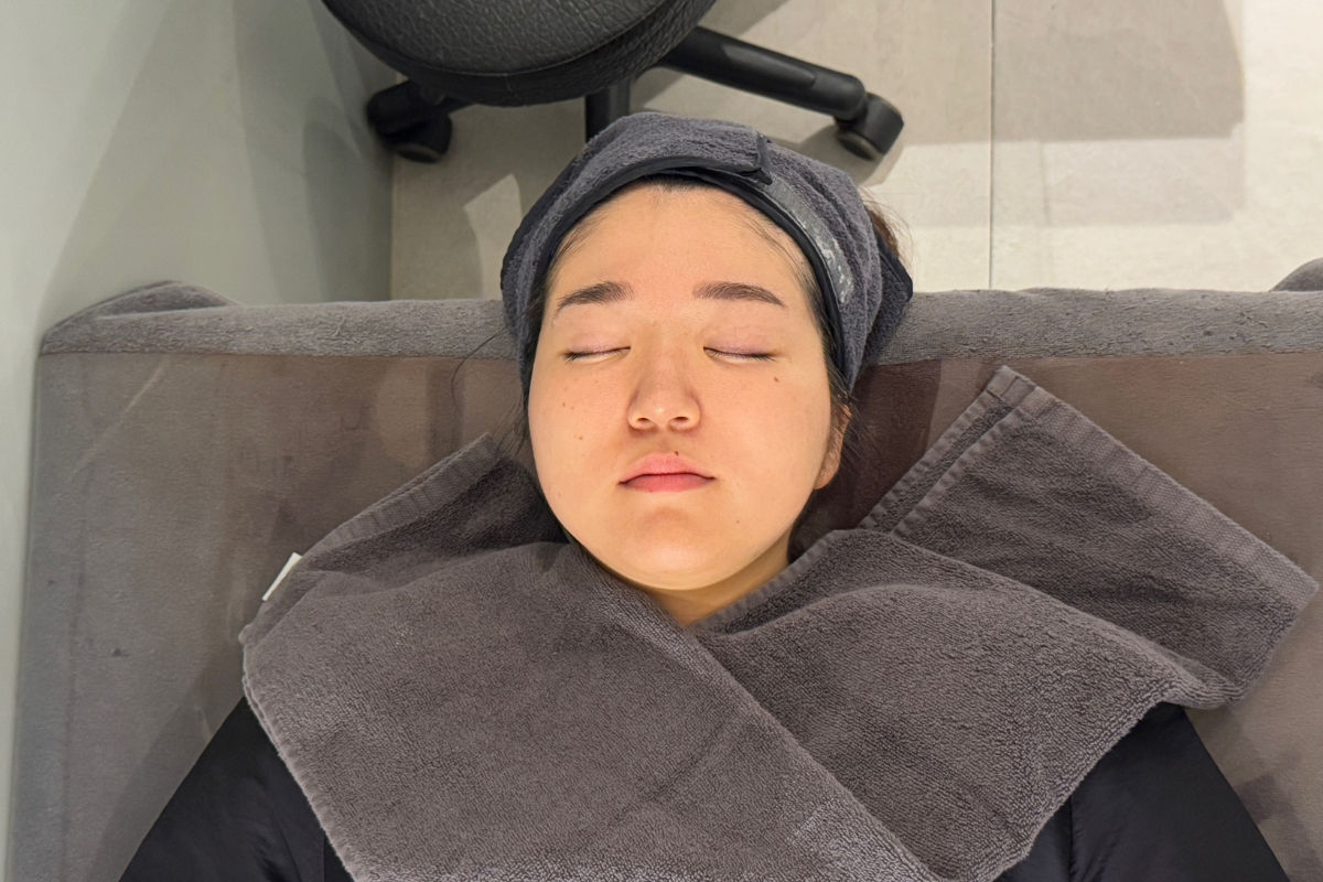做完整套療程,臉部光澤提升,且原先的紅色痘印也明顯消了許多!整個體驗過程相當舒服,在進行LED光療時,還不小心睡著了呢