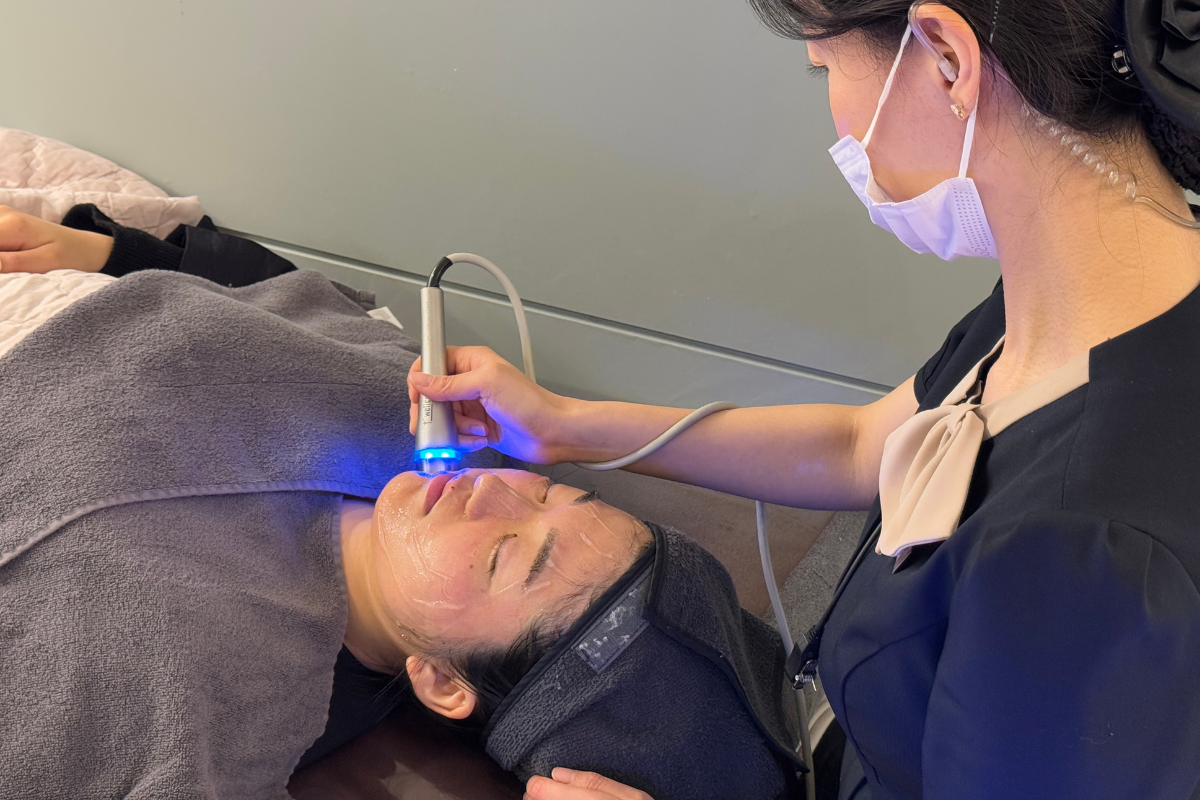 做完擠痘和雷射以後,美容師會接著進行鎮定的步驟,以減少皮膚在過程中產生的刺激。
