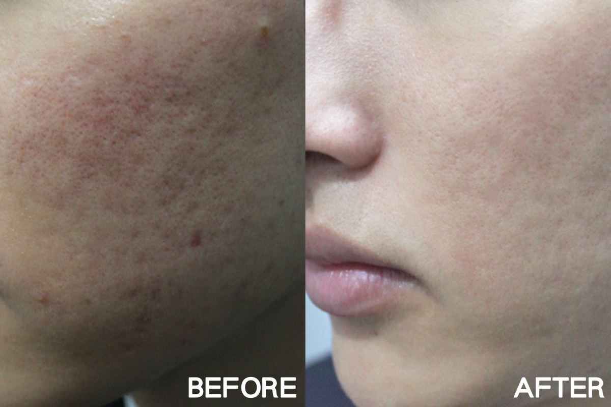 小編同事雖然沒有痘痘問題,但臉上有過去擠痘殘留的痘疤以及毛孔粗大的問題,所以諮詢時,醫生推薦他可以做「痘疤修護套餐(Post-Acne Package)」。