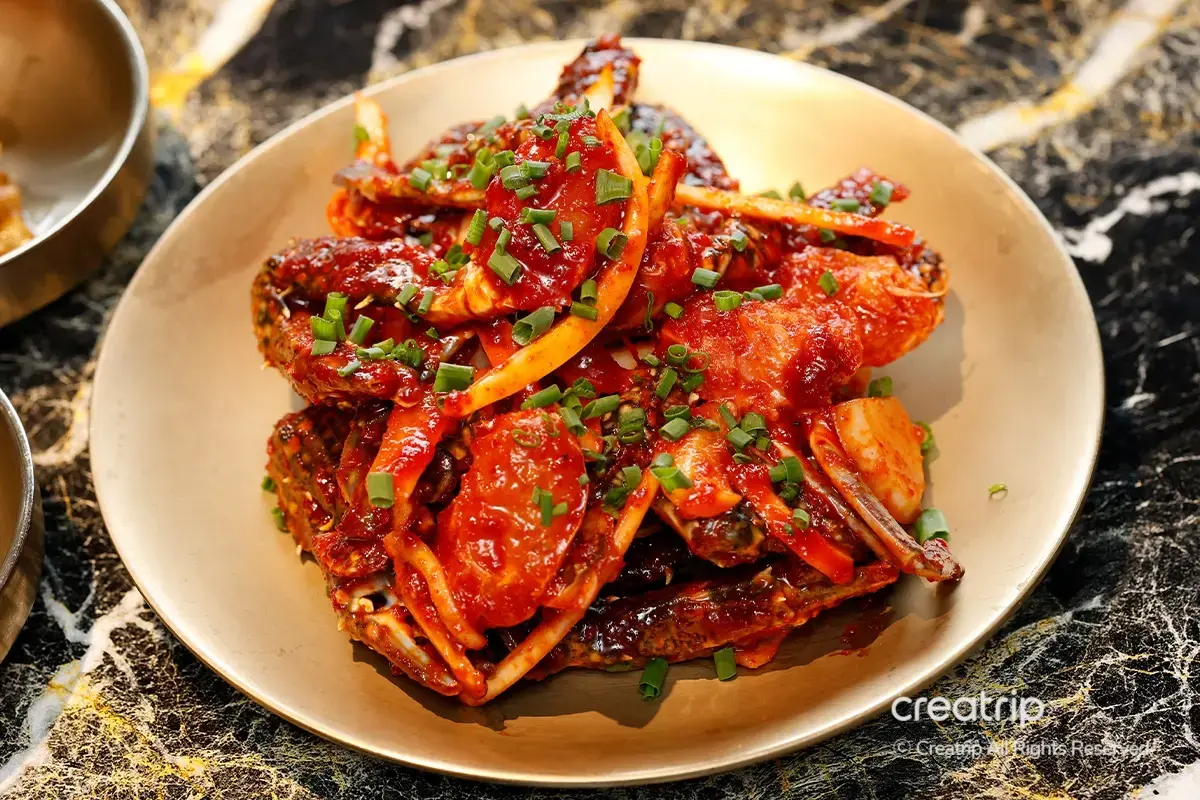 透過Creatrip預約,還可免費享用一道料理,小班選了辣味醬蟹,肉質飽滿且醬汁入味,非常推薦!