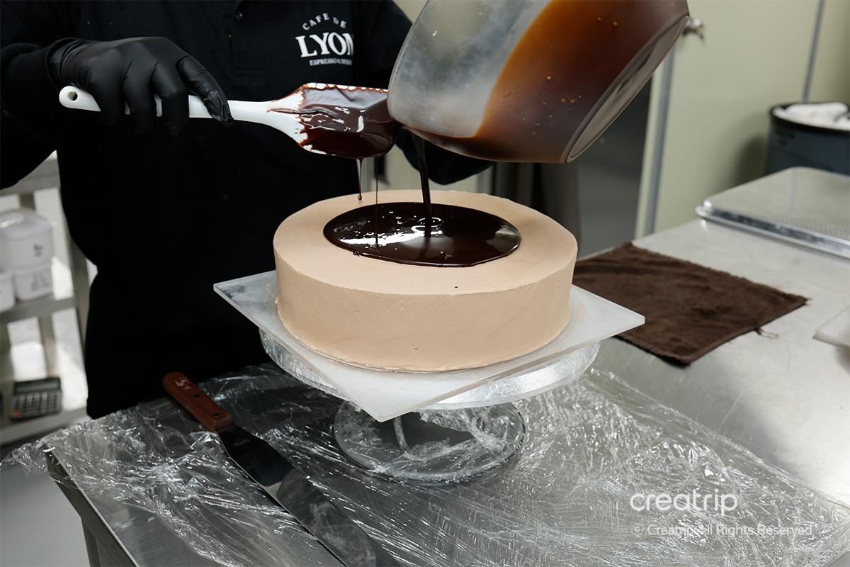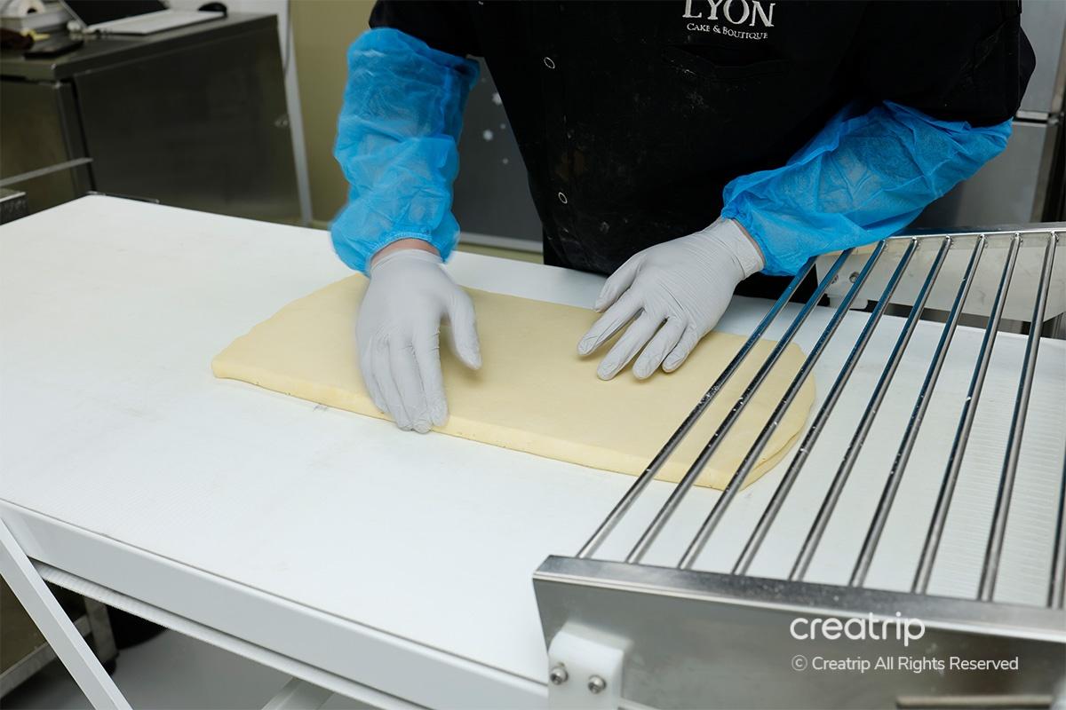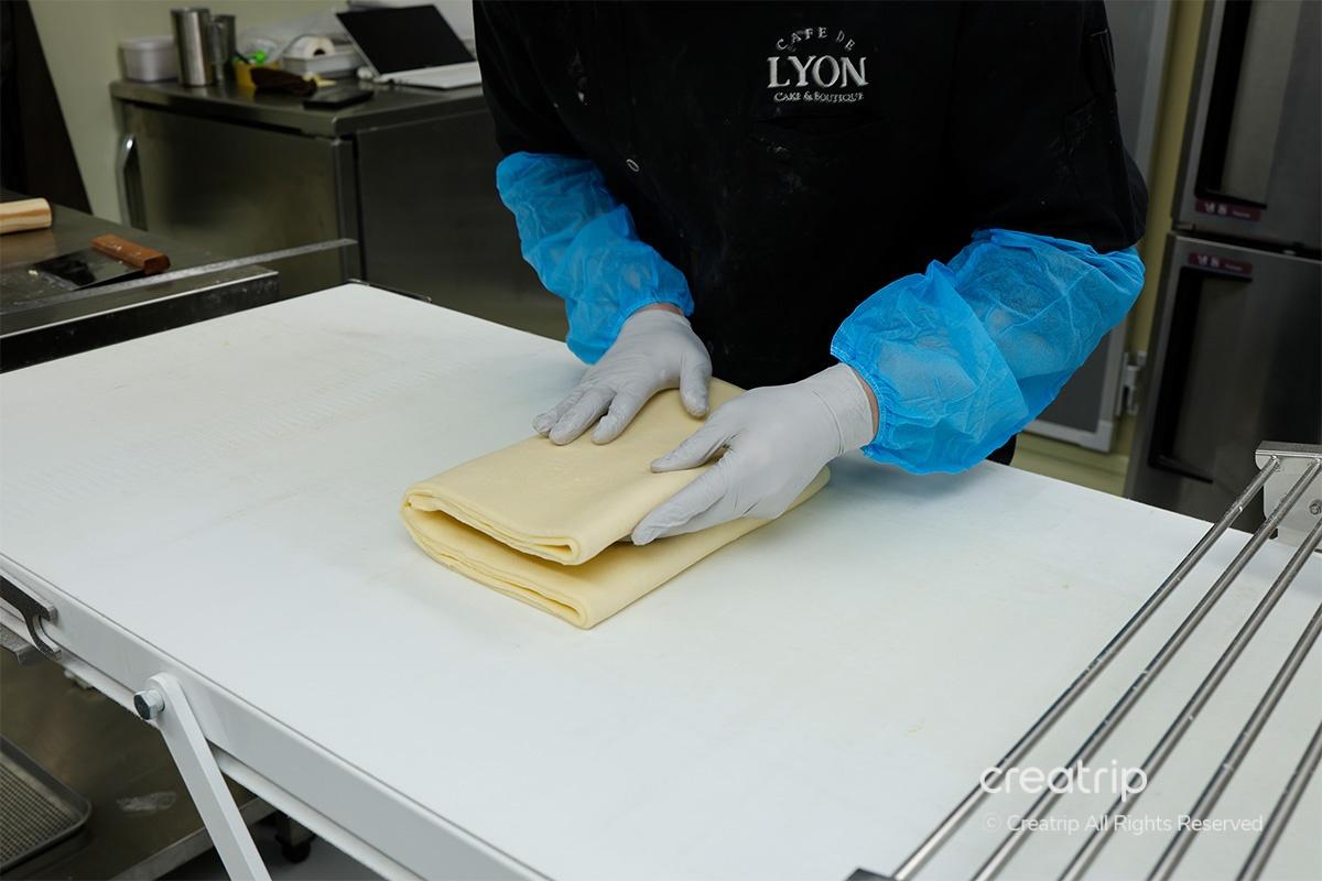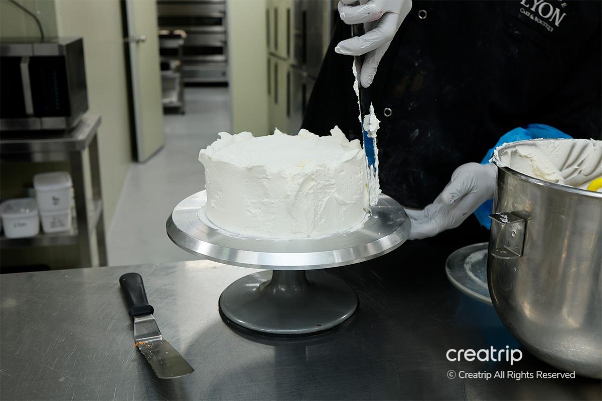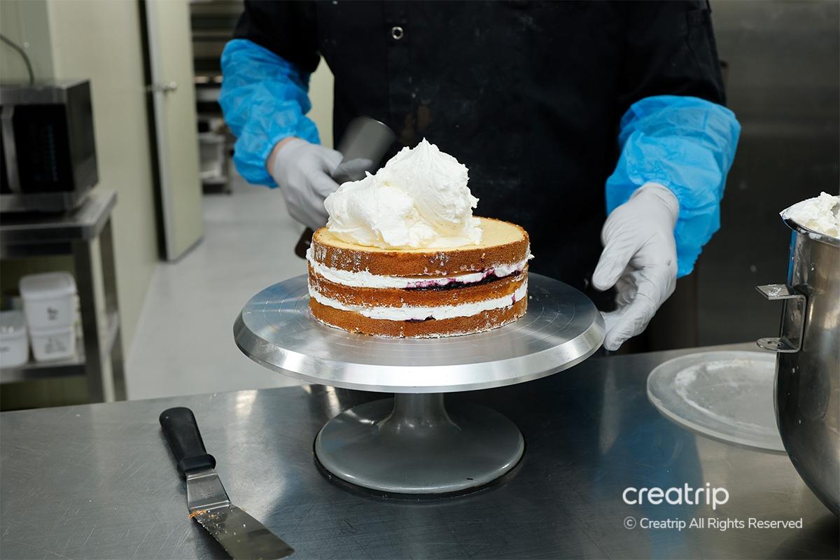 能近距離看到蛋糕裱花和千層派製作的畫面,讓人更能感受到這家店對甜點的用心。