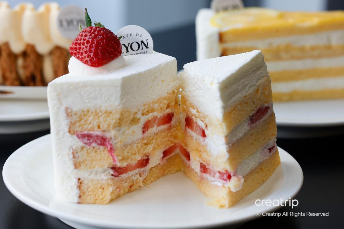 這款是柔軟戚風蛋糕搭配新鮮草莓與鮮奶油,入口即化,在草莓盛產的季節吃起來特別香甜,超幸福!