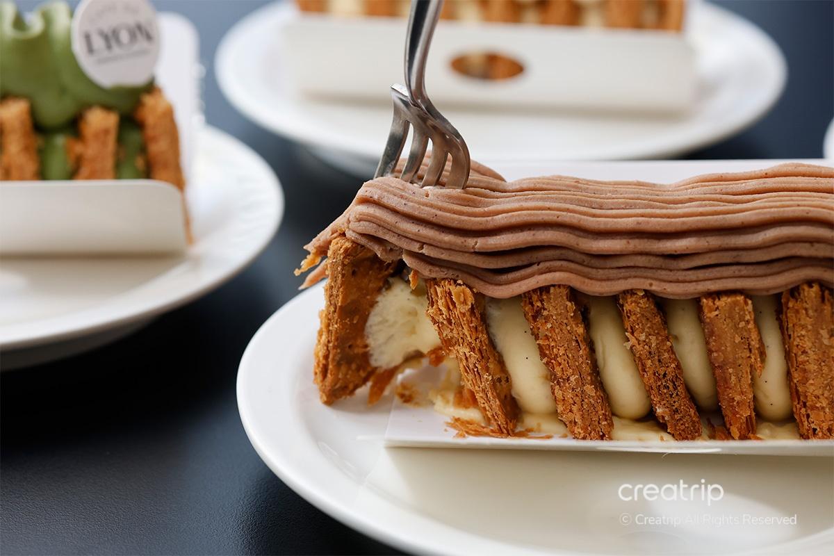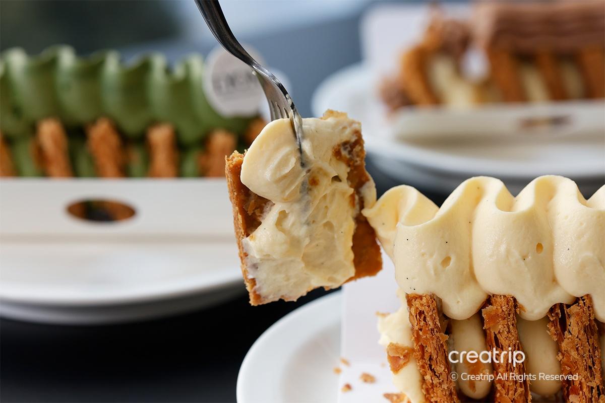 最具代表性的「香草千層派」一定要先吃!用叉子將派皮與奶油一起入口,香草奶油濃郁卻不膩,入口即化!