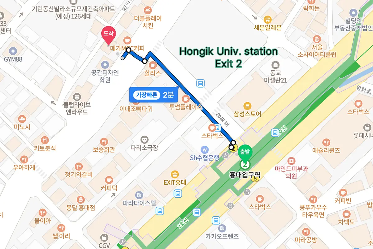 從弘大入口站3號出口直走即可抵達,路線非常簡單好找。