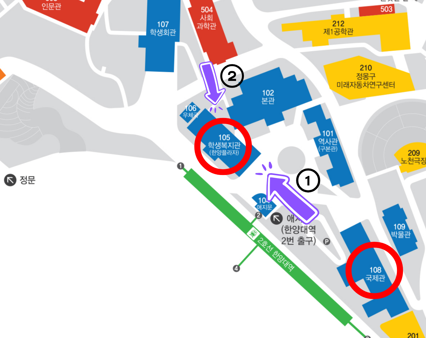 第二種方法:從社會科學館(504)連通到Hanyang Plaza。