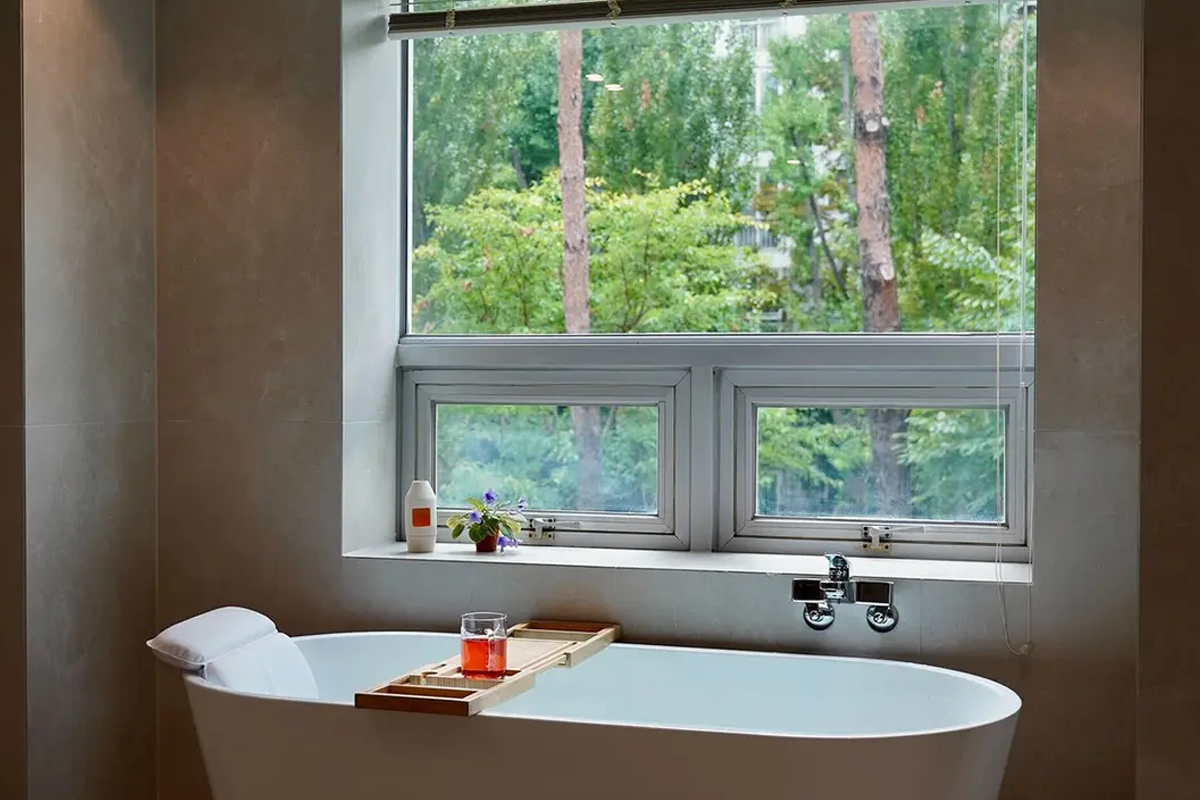 距離金浦機場約15分鐘、仁川機場約45分鐘,旅程前後都方便造訪,也有雙人房,適合與親友同行放鬆。