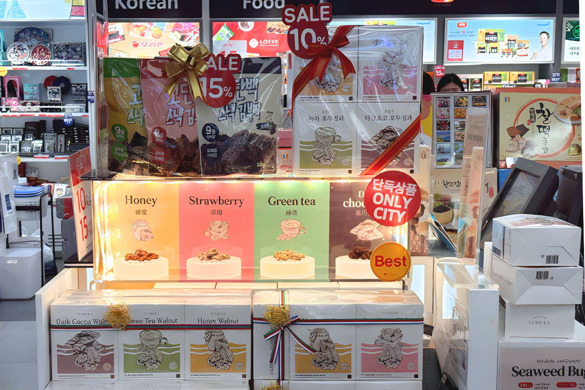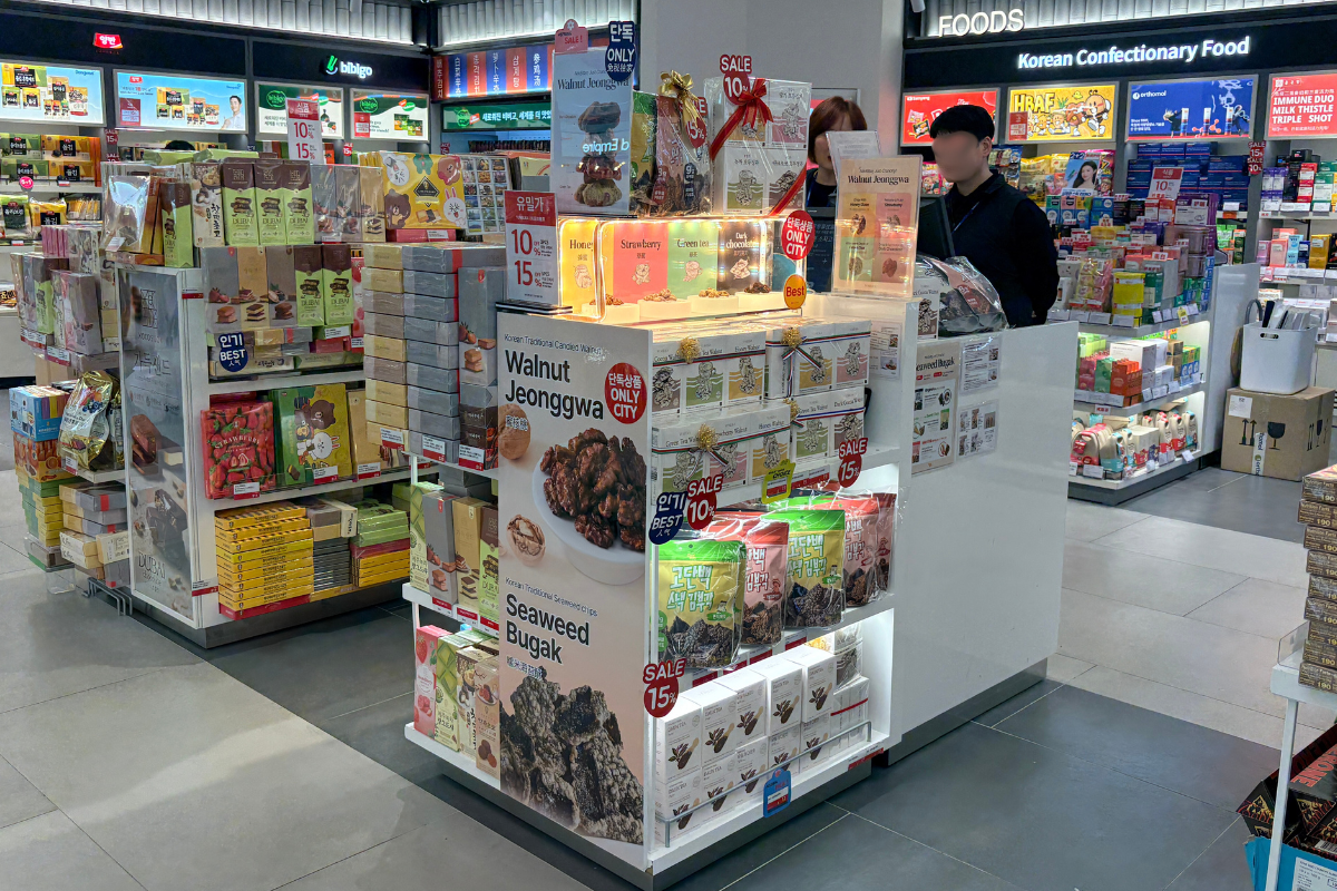 Bugak&Chip的海苔脆片一包$5美金,現在有買5送1的優惠活動,且現場購買Bugak&Chip和YUMILKA的免稅商品每滿$10美金,再加贈1包蜜糖核桃,平均算下來比在韓國超市購買還划算!