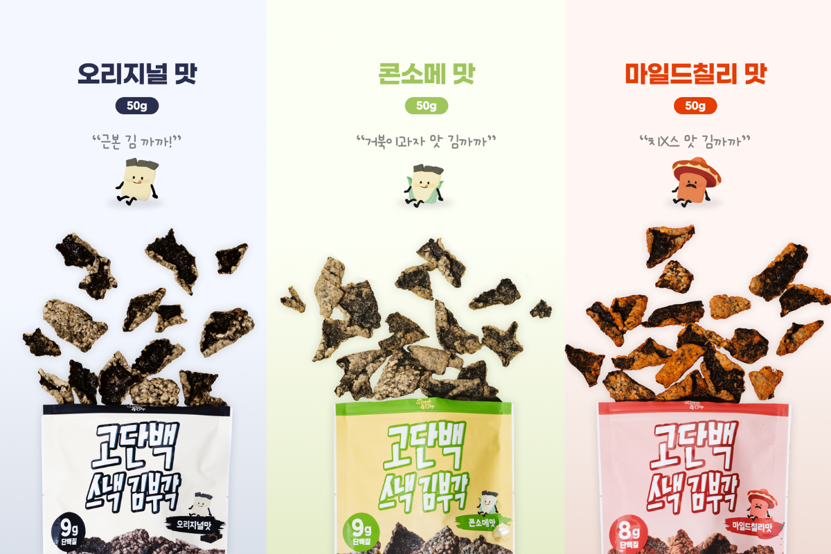 「Bugak&Chip」是使用韓國國產海苔和糙米油製作,口感酥脆不油膩。經過改良後,高蛋白、無麩質的健康特色,讓K-POP偶像和健身族群都愛不釋手!重點是口味選擇豐富,完全不怕會吃膩!