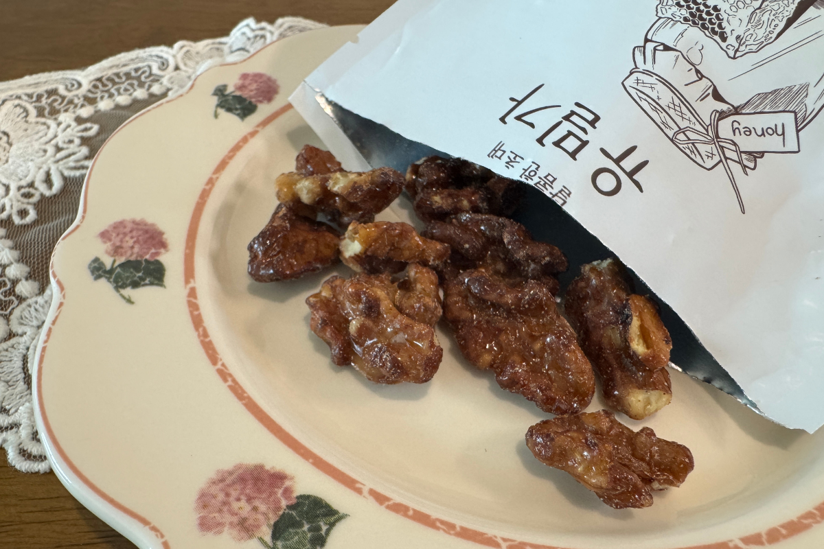YUMILKA蜜糖核桃中的「蜂蜜口味」是經典中的經典,整顆香脆核桃裹上韓國傳統蜜漬工法製成的蜂蜜外衣,甜而不膩,是那種越嚼越香、長輩也會喜歡的口味。