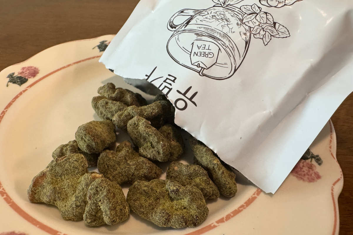 YUMILKA蜜糖核桃中的「抹茶口味」外層是微微苦韻的抹茶粉,搭配核桃的香氣,層次感十足。它不是那種甜膩的抹茶,而是帶點清新草本香的風味,吃起來很有日本和菓子的感覺。配上熱茶或烘焙茶,直接晉升質感系大人味。