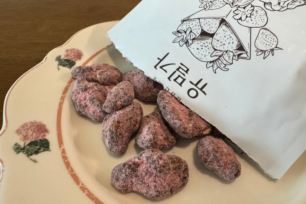 喜歡「草莓口味」的朋友一定不能錯過這款!整顆香脆核桃裹上草莓糖粉,入口後會先嚐到草莓的香甜味,接著是香脆的核桃果,超適合拿來當下午茶小點,或是拍照打卡用的夢幻伴手禮。