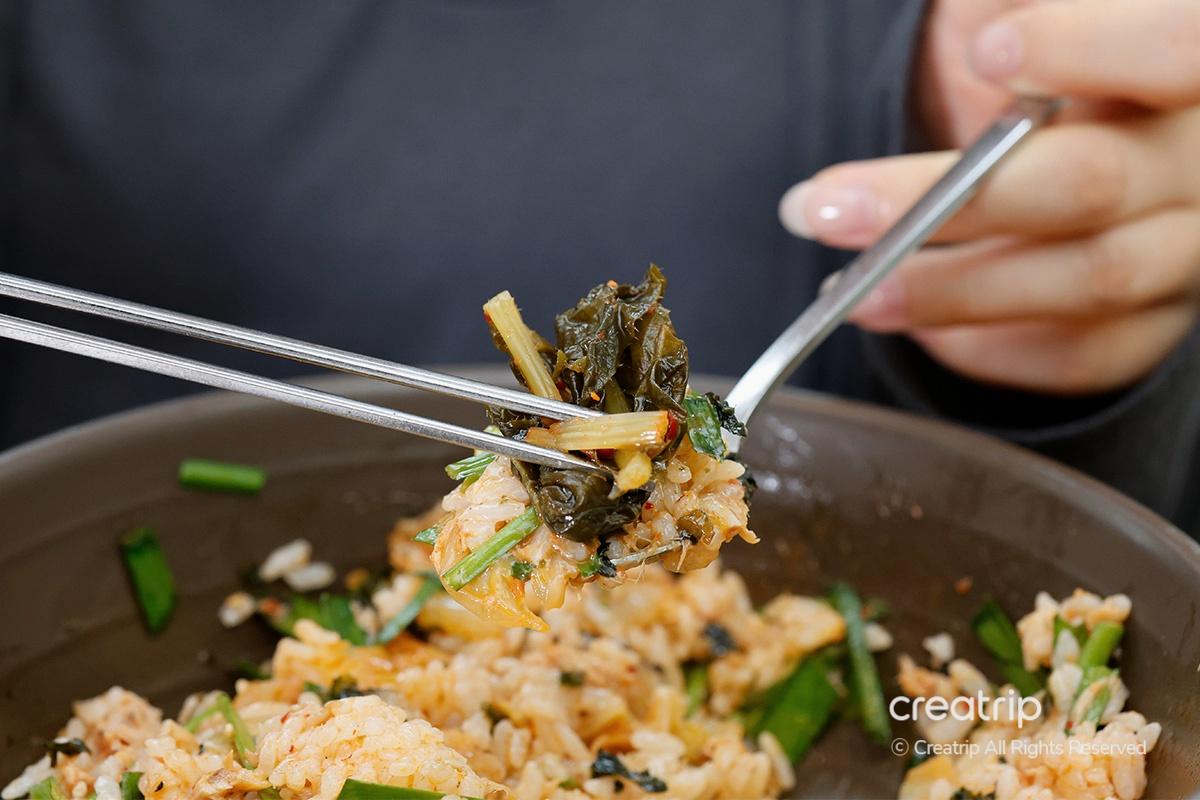 這樣拌飯配上作爲小菜的炒辛奇、蘿蔔纓辛奇,還有燉辛奇的陳年辛奇,真是完美的組合!