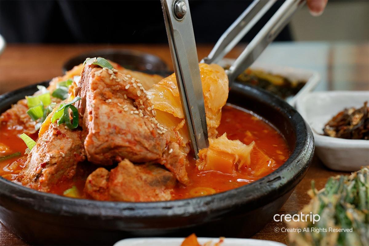 柔軟的肉和陳年辛奇的濃郁味道融合在一起,可以真正感受到韓食的精髓。