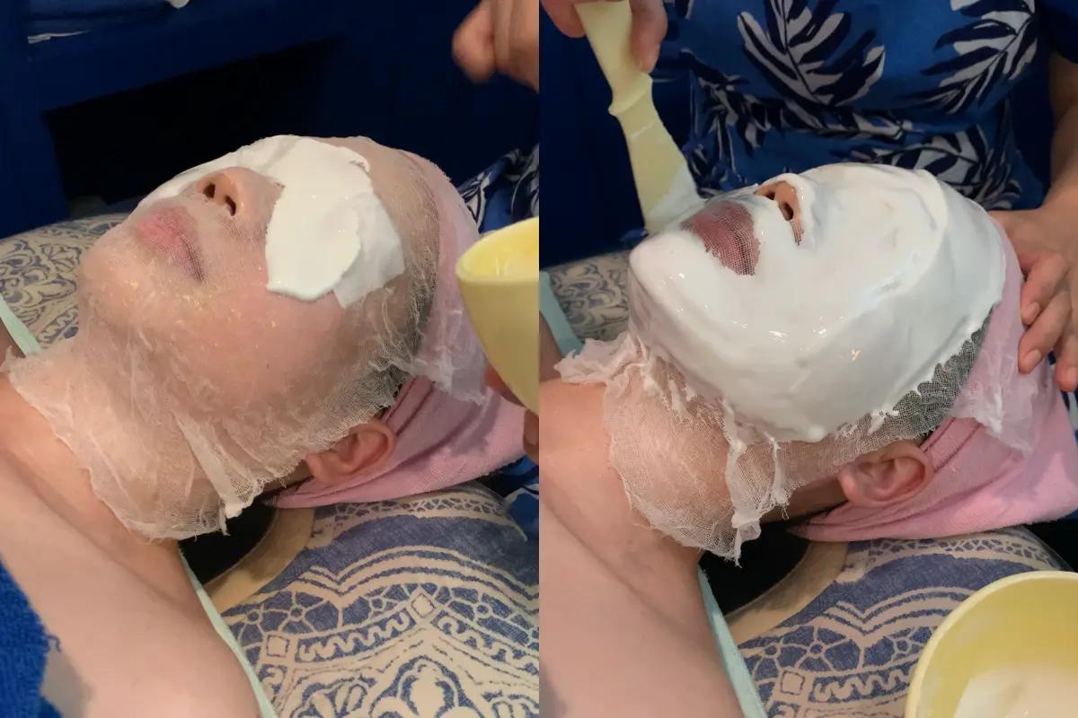 小編之前去做臉部拉提與經絡按摩,療程前會在臉上敷一層石膏膜,讓大家可以比較療程前後的臉部輪廓與大小!期間按摩師會先做全身按摩,確認力度合不合適後就會開始按腳、背脊、肩頸與各種穴位,最後還會敷面膜並擦cream,非常仔細。