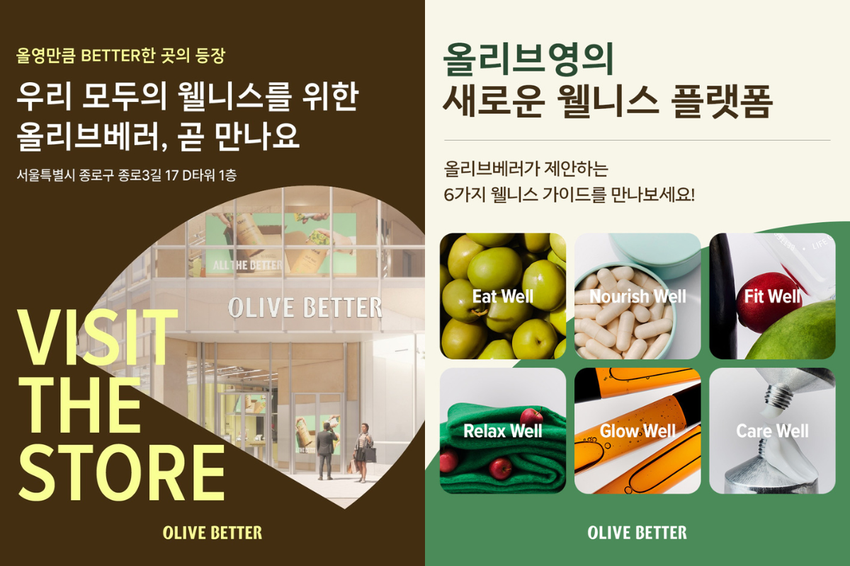 OLIVE YOUNG在2026年推出主打Wellness路線的新品牌「OLIVE BETTER」,不再只是賣韓國彩妝、保養品,而是把「由內而外的健康變美」變成一個完整的生活體驗空間,首間實體門市於2026年1月在首爾光化門開幕。