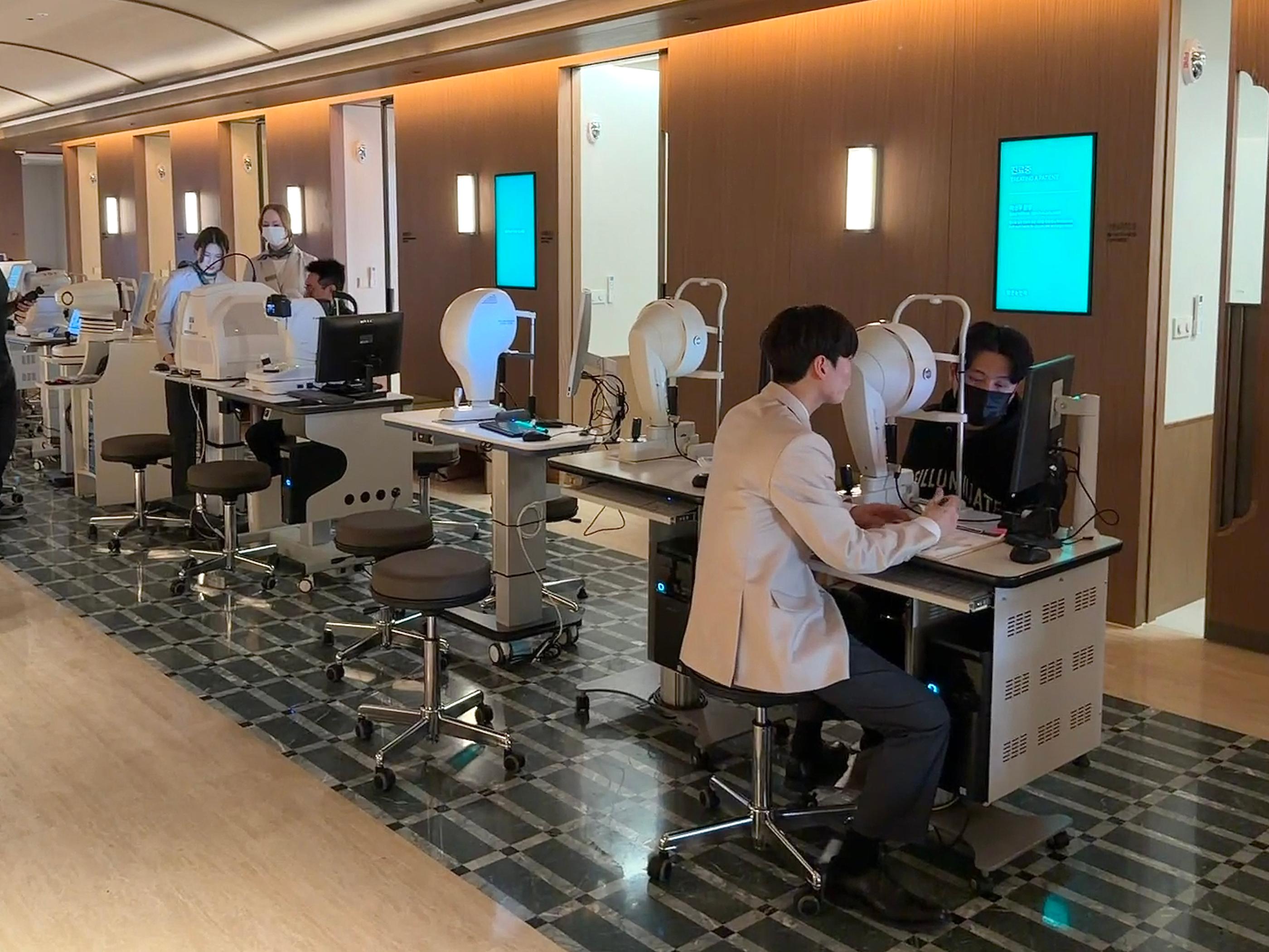 接著來到1樓中央的檢測中心,這裡的動線體現了「以患者為中心」的設計,整個流程高度組織化,由專人逐步導引,雖然當天檢查的人滿多的,但完全沒有大型診所常見的混亂擁擠感。整體裝潢依舊維持著五星級飯店的質感,柔和的米色調搭配低刺激照明,雖然高級但不會讓人有壓力,待久了眼睛也不會疲勞。