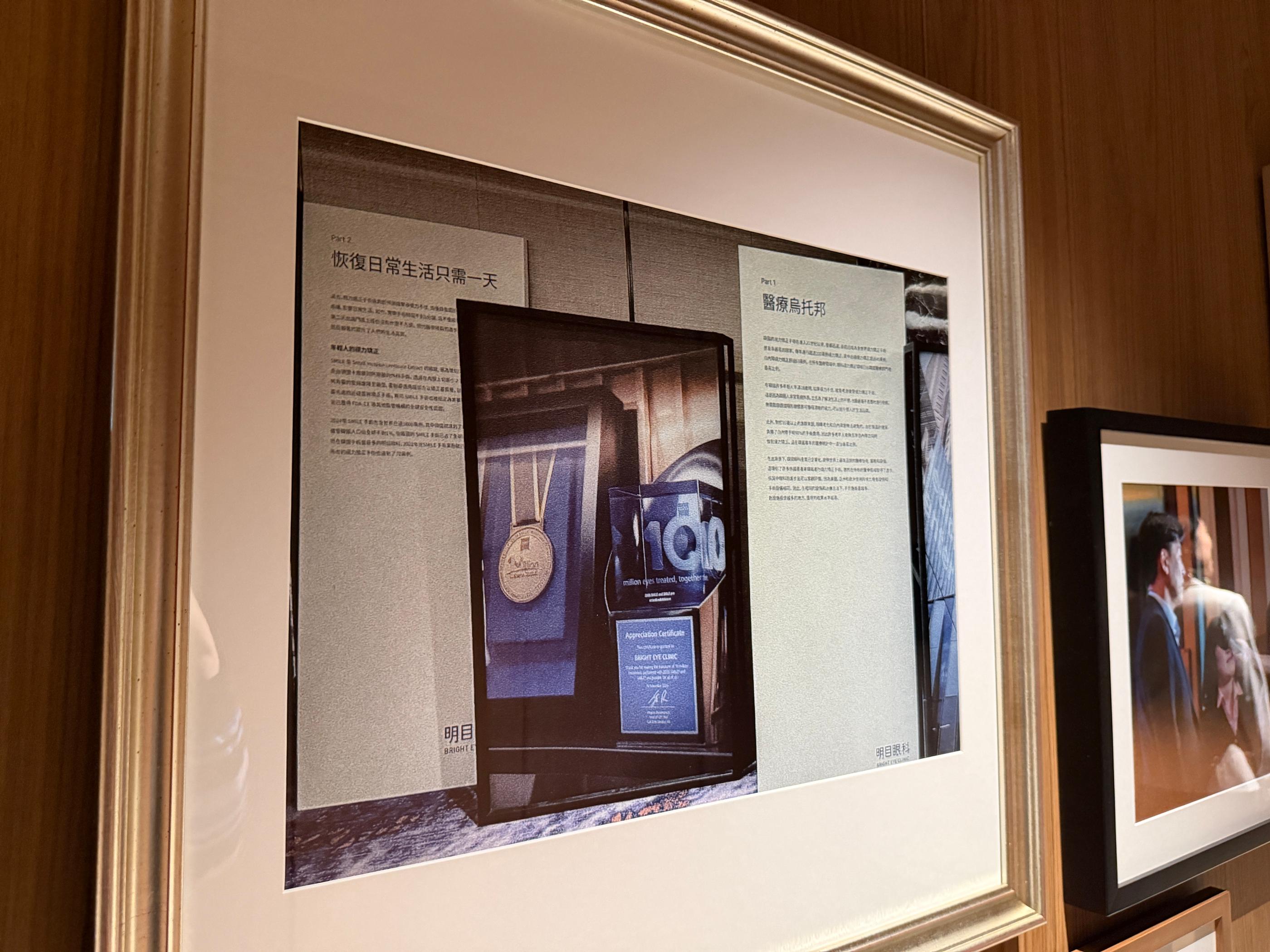 明目眼科的大廳牆上展示了許多具備權威性的榮譽獎項,最讓我印象深刻的就是KAHF認證以及韓國國務總理表彰獎。