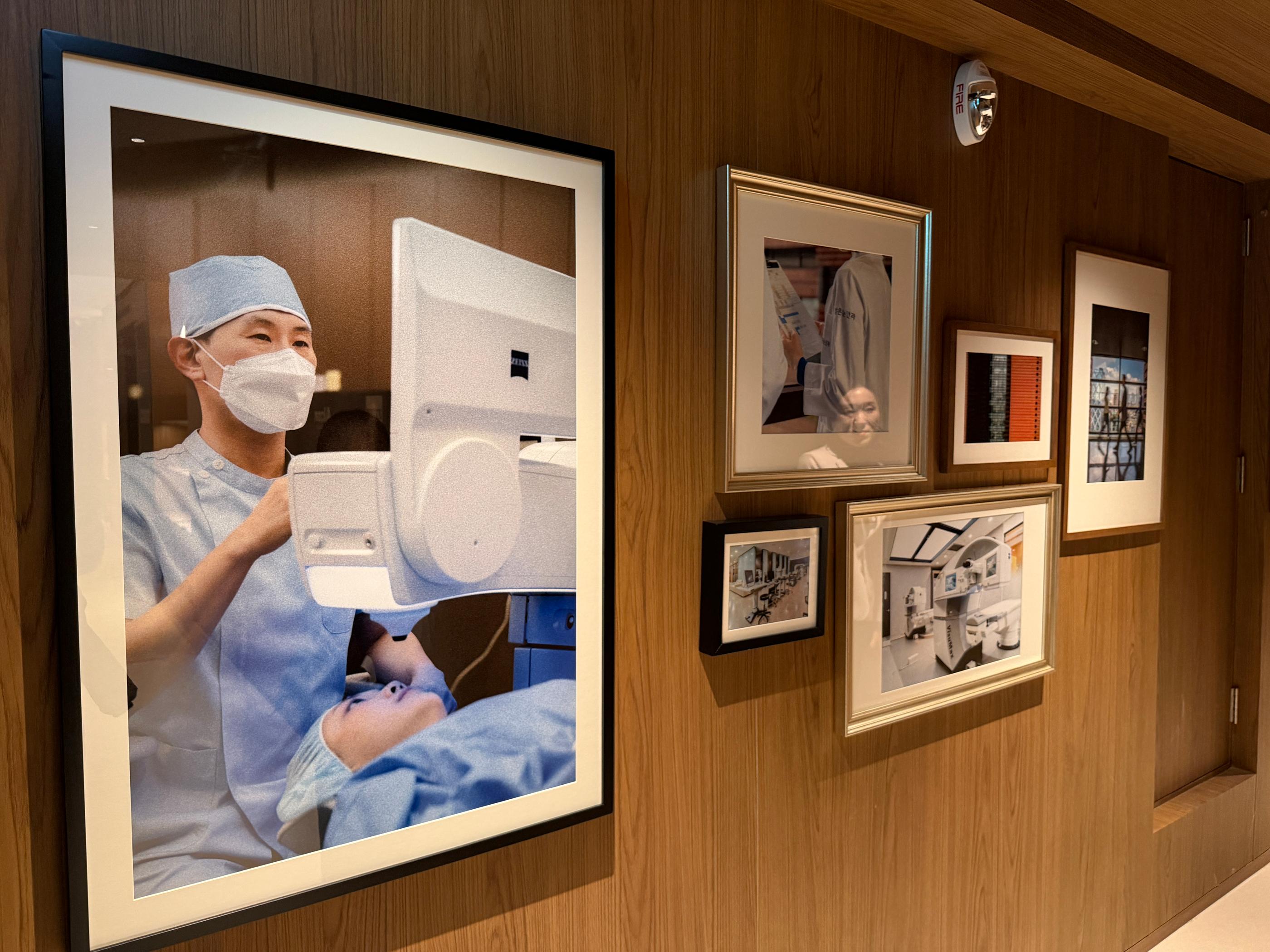 掛完號準備去置物櫃放東西時,走廊牆上掛滿了醫院的歷史照片,仔細一看沒想到其中竟然掛著去年我們在台灣舉辦說明會的照片,回想起當時在現場跟著一起聽明目眼科介紹韓國醫療技術的點點滴滴,突然感覺到一種溫馨感,原本看資料寫Bright 3.0還以為只是單純換個新大樓,但看到醫院把這段台韓醫療交流的紀錄都保留下來,能感受到他們對患者的重視,這種充滿溫度的細節,比任何行銷口號都更能打動人。